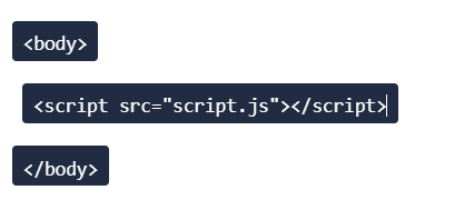 Remember to put the script tag right before the closing body tag. This way our HTML code will execute before our external JavaScript document.
