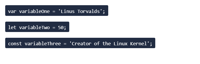 var: It’s better to use either let or const for variables, but this variable type will still work and is still used in applications to this day. This variable can be updated and re-declared.